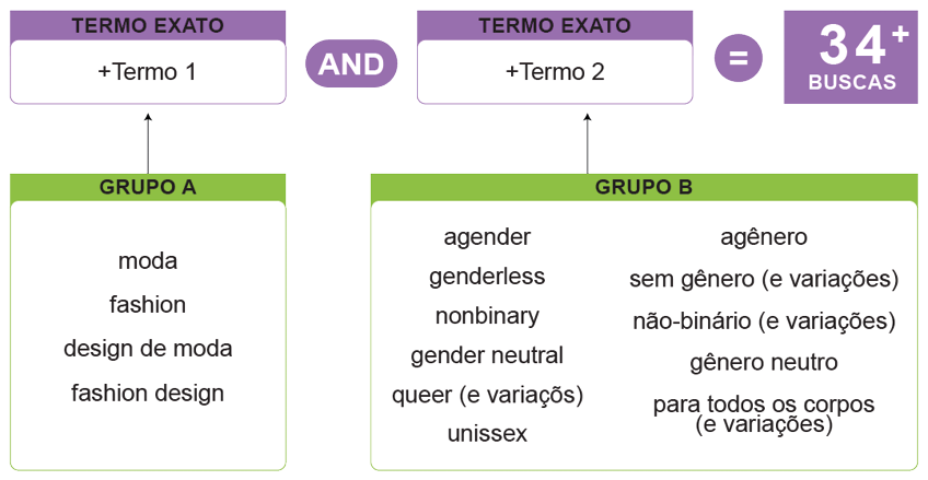 Figura 1 – Seleção de palavras-chave para levantamento de dados e operadores utilizados nas pesquisas