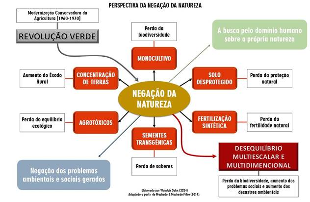 O desenvolvimento proposto ao longo da Revolução Verde para campo brasileiro foi progressivamente afastando agricultores do ambiente, conformando um modo de agricultura expresso na Negação da Natureza. Essa negação gerou, e ainda gera, uma crise na agricultura. O modelo de desenvolvimento criado na Revolução Verde já se revela desgastado e incapaz de recriar-se a partir de premissas sustentáveis, uma vez que sua lógica fundamenta-se na exploração da natureza.