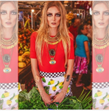 ARAÚJO, Vinícius. [Vestido com padronagem de fruta e adorno de banana na cabeça]. Belém, 6 fev. 2017g. Instagram: @vinny_araujo. Disponível em: https://www.instagram.com/p/BQLHNURDahG/. Acesso em: 15 dez. 2018.