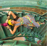 ARAÚJO, Vinícius. [Vestido estampado e modelo deitada em uma escada de ferro verde]. Belém, 6 fev. 2017d. Instagram: @vinny_araujo. Disponível em: https://www.instagram.com/p/BQLHn0rjsUl/. Acesso em: 12 nov. 2019.