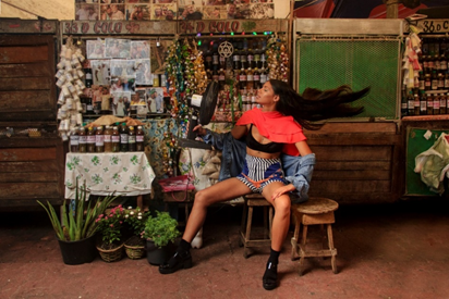 JOSÉ, Cassio. [Modelo sentada, segura ventilador em meio as barracas de ervas do complexo do mercado do Ver-o-Peso]. [S.l.], 30 mai. 2017. Instagram: @cssiojose. Disponível em: https://www.instagram.com/p/BUvFPBXlzo1/. Acesso em: 12 nov. 2019.
