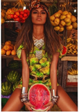 ARAÚJO, Vinícius. [Vestido estampado e modelo apoiada no carrinho de frutas]. Belém, 6 fev. 2017c. Instagram: @vinny_araujo. Disponível em: https://www.instagram.com/p/BQK5u8lDpTz/. Acesso em: 12 nov. 2019.