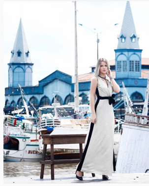 CARNEIRO, Diogo. [Modelo com vestido longo cinturado e mercado de ferro ao fundo]. [S.l.], 20 mai. 2017a. Instagram: @diogocarneirosaul. Disponível em: https://www.instagram.com/p/BUU5r5CDQ-O/. Acesso em: 12 nov. 2019.