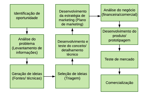 As etapas do pré-desenvolvimento recebem nomes diferentes na literatura, mas são citadas basicamente as atividades de identificação de oportunidades; seleção de oportunidades; geração de ideias; seleção de ideias; desenvolvimento de conceito; seleção de conceitos e planejamento de projetos. Todos estes processos são essenciais e devem estar presentes no desenvolvimento de novos produtos, independente do ramo de atuação da empresa (COSTA; TOLEDO, 2016).