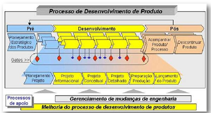 O processo de desenvolvimento de produtos é constituído por um conjunto de atividades, que visa satisfazer a demanda da população, integrar-se a outros produtos, incorporar novas tecnologias e adequar-se a restrições legais, sendo fundamental realizar as especificações do projeto, para que a manufatura esteja hábil à produzi-lo e acompanha-lo após seu lançamento (ROZENFELD et al., 2006).