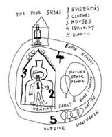 Hundterwasser talvez tenha compreendido o que nem todos os homens são capazes de compreender: que a vida é um mistério para ser contemplado e vivido com a certeza de não se estar só, ao desenvolver a Teoria de Hundterwasser na qual revela a espiral das Cinco Peles: a primeira, a epiderme; a segunda, o vestuário; a terceira, a casa do homem; a quarta, o meio social e a identidade; a quinta, a humanidade, a natureza e o meio ambiente (Figura 2).