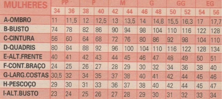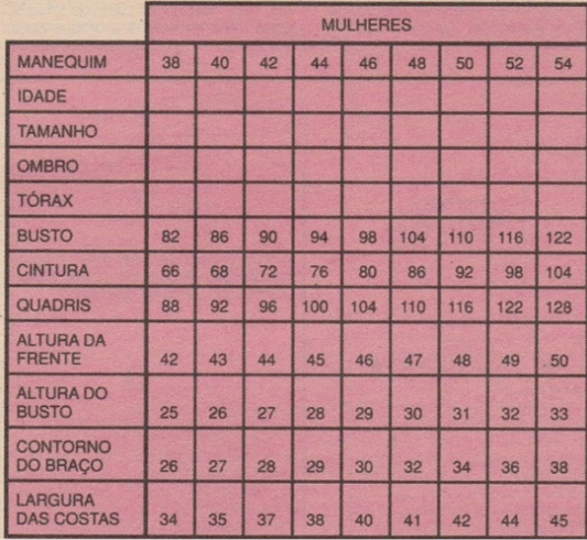 Figure 2. Measurement Chart from Revista Manequim - January 1996, Year 37, No. 01/433