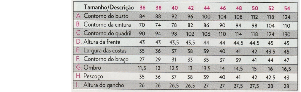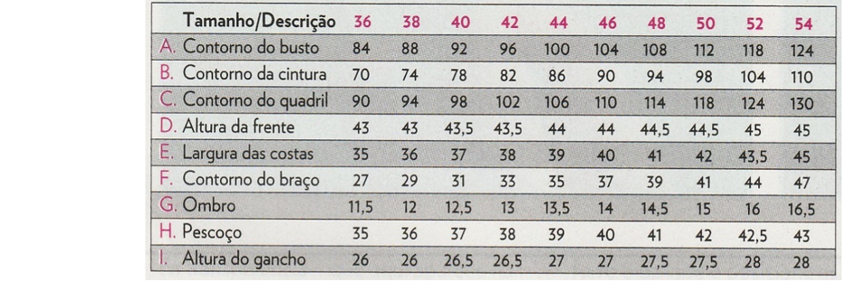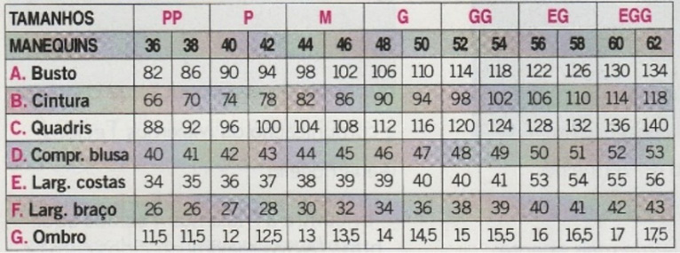 Por fim, na Figura 4, consta a tabela mais recente utilizada pela Revista Manequim em agosto de 2022.