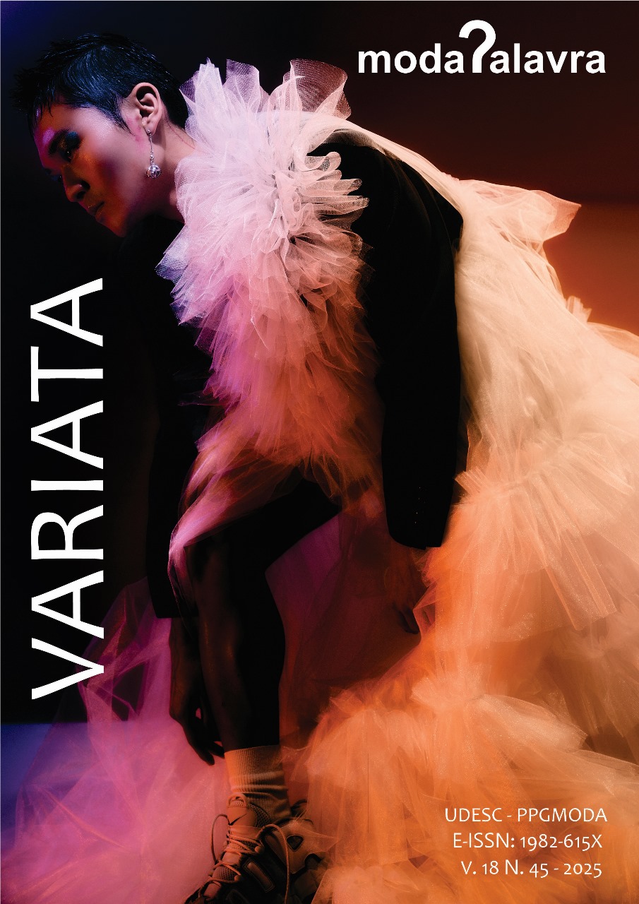 Seção voltada para artigos inéditos submetidos em fluxo contínuo, que irão compor a Variata do ano de 2025, conforme a inserção gradual de produções acadêmicas com temáticas resultantes de pesquisas científicas nacionais e internacionais relacionadas ao campo da Moda – compreendida na interface com distintas áreas do conhecimento, tais como Ciências Humanas, Ciências Sociais Aplicadas, Letras, Linguística e Artes, Arquitetura, Urbanismo e Design.