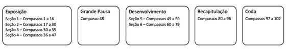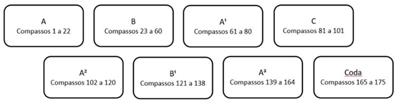 rubato, é composto por 102 compassos e pode ser dividido conforme