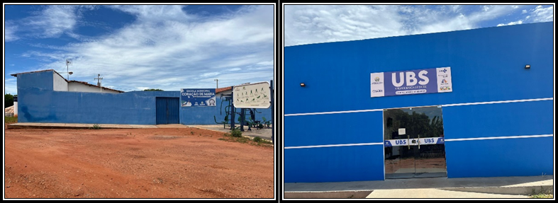 Figura 04 – Fotos da pesquisa de campo, no aglomerado rural Floresta – Apodi (RN), realizada em 30 de janeiro de 2024. A) Escola Coração de Maria, de Ensino Fundamental menor. B) Unidade Básica de Saúde Lourival Bezerra de Medeiros